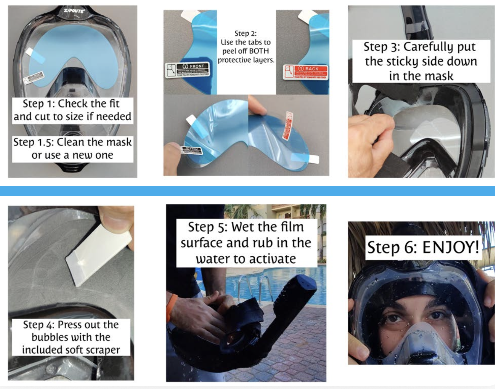 Manchmal bleibt eine zusätzliche Schicht von Schutzfolien auf dem Einsatz. Dadurch bleibt die Anti-Fog- oder Klebstoffschicht bedeckt, so dass sie nicht funktioniert. Sie können versuchen, diese zusätzliche Schicht abzuspeilen oder sie mit einem Stück Klebeband abzuziehen. Wenn alles andere fehlschlägt, kontaktieren Sie uns einfach unter info@fogx.ch für eine neue Folie!